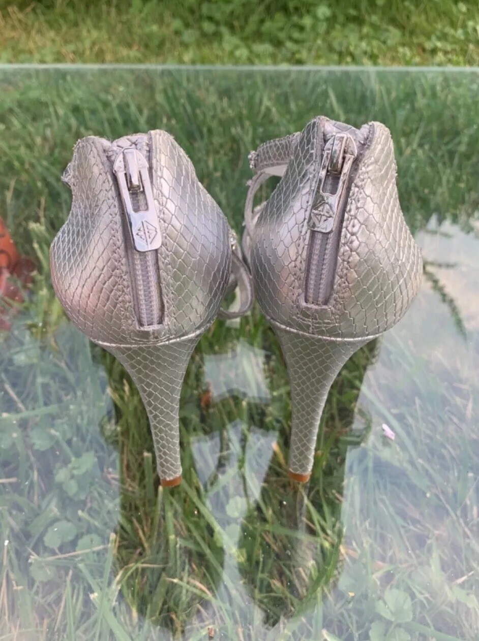 Elevate your look with these stunning Antonio Melani strappy high heels. The silver and blue color combination, glitter pattern, and rhinestone accents make them perfect for any occasion - from weddings and formal events to parties and cocktails. The ultra-high stiletto heel adds extra height and glamour, while the open toe and zip closure provide comfort and ease of wear. Crafted with leather outsole and lining, these heels ensure durability and long-lasting wear. The 1-inch platform height gives a lift to your silhouette, while the standard shoe width provides a comfortable fit. Whether it's summer, fall or spring, these shoes are perfect for any season. Add a touch of metal theme to your outfit with these stylish heels.