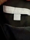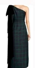 A stylish Antonio Melani Black Watch Gown with velvet accents in size 12 with long sleeves and a zip closure. This designer sheath dress, made from a polyester blend material, is perfect for a party or cocktail event. The elegant long dress features a unique black watch pattern and has a classic preppy look with an elegant velvet bow with long streamers First photo shows how the dress looked before I customized it by moving the bow and streamers to the right to make a little cape for the bare arm. This gown is a statement piece for any special occasion. Be ready for the compliments!