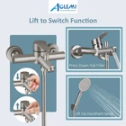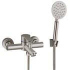 【Quality Promise】:Maximum Flow Rate: 1.25gpm 4.73L/min Manufactured from solid stainless steel SUS304 with good corrosion resistant performance for ensuring the quality and longer durability.The material can not only prevent tarnishing and rusty but also keep you and your family safe from harmful chemicals. 【Double functions】Tub Faucet and Handheld Shower, diverter switches between 2 functions, either one works or the other. Tub wall faucet with sprayer [Special Feature]:Single-handle design for easily controlling the mix of hot and cold water. Handheld shower with 59 inch shower hose for targeted cleaning during a bath, rinsing off after a bath or washing children and pets with ease, offer maximum flexibility. 【Installation Hole Distance】6 inches (15cm),Ship with adjustable adapter to adjust installation hole distance between 5 inch - 6.6 inch (13cm-17cm) 【Reliable Design】This wall mount tub faucet is single handle can easy to control hot and cold water, ship with all install hardware.