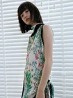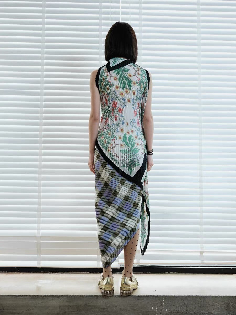 Aosstudio purple plaid floral irregular design pleated skirt high neck sacrf. Condition is New with tags. Shipped with USPS Ground Advantage.