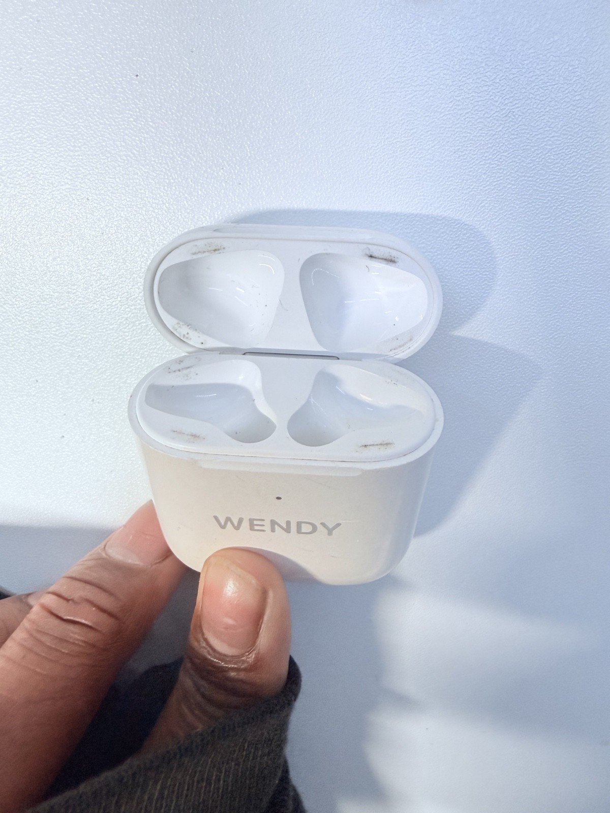 This set of AirPods includes -AirPods gen 2 case -Left airpod -Right AirPod This item does NOT come with Lightning cable for AirPods (but will be fully charged) This set of AirPods shows some signs of usage shown in the photos with also getting up to 4-5 hours of listening time If you have any other questions about this item please feel free to message me at any time before or during your purchase. Id love to help!!