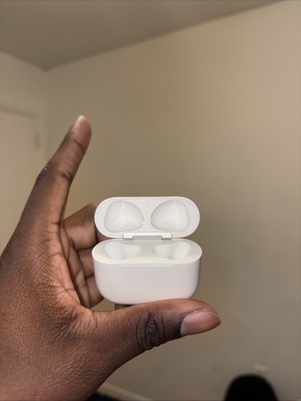 The product is a pre-owned Apple AirPods 3rd Generation with a MagSafe Charging Case, model A2566. Please note: It is the charging case ONLY, NO airpods inside.