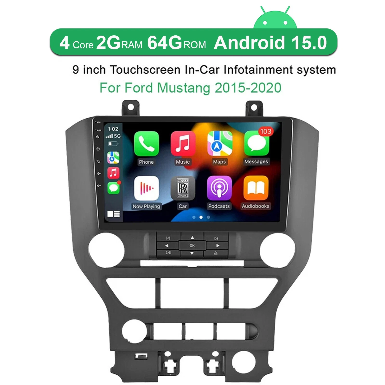 Fitment: For Ford Mustang 2015-2021 Features: High definition 9-inch 2.5D tempered glass mirror automatic radio player Wireless Carplay: You can choose to connect to Carplay wirelessly or wirelessly, connect to your Apple phone, access phone contacts, emails, notifications, map navigation, music, videos, and other information, and achieve voice control. Wireless Android Car: The wireless Android car system can tightly integrate users' Android phones and players, and achieve navigation, making phone calls, sending and receiving messages, listening to music, and other operations through data cable connections; Built in GPS navigation: Users can purchase offline navigation directly from the Play store. After connecting to WiFi, you can use Google Maps perfectly, and you can go anywhe Guarantee ⭐⭐⭐⭐⭐100% Bran-new and Good Quality ⭐⭐⭐⭐⭐2026 New upgrade version ⭐⭐⭐⭐⭐Item Located United States ⭐⭐⭐⭐⭐ Fast shipping 2 to 5 working days ⭐⭐⭐⭐⭐ 60 Days Money Back + 90 days Warranty ⭐⭐⭐⭐⭐ CE,FC,RoHS,PSE Please be noted that we stock our products in US, and you will get your package in around 1-5 work days, while there are some other sellers who claim to be US stock too, but take more than a week (4-10 Days) to deliver, which are usually China stock in fact. We maintain high standards of excellenceand strive for 100% customer satisfaction! Please don't open cases or return requests without contacting us. If you have any questions about quality, shipping or other problems, please contact us first via eBay message. We will give you a satisfy solution. Fitment: For Ford Mustang 2015-2021 Features: High definition 9-inch 2.5D tempered glass mirror automatic radio player Wireless Carplay: You can choose to connect to Carplay wirelessly or wirelessly, connect to your Apple phone, access phone contacts, emails, notifications, map navigation, music, videos, and other information, and achieve voice control. Wireless Android Car: The wireless Android car system can tightly integrate users' Android phones and players, and achieve navigation, making phone calls, sending and receiving messages, listening to music, and other operations through data cable connections; Built in GPS navigation: Users can purchase offline navigation directly from the Play store. After connecting to WiFi, you can use Google Maps perfectly, and you can go anywhere you want without getting lost again. High definition 1080P: Full capacitive touch screen, easy to operate, carefully designed car user interface Built-in WIFI: Connect to WIFI and you will discover a new world, with online maps being the most convenient. Rear camera: supports AHD high-definition 720P camera image input, and can switch between CVBS and AHD by simply selecting in the settings (optional) Hi Fi function: High fidelity, reproducing sounds that are highly similar to the original sound Steering wheel control: Through it, you can control the functions you need through the steering wheel, which is more convenient Built in Bluetooth A2DP/Handsfree/Phonebook: Bluetooth hands-free calls, Bluetooth music player, automatic loading of phonebook Driving recorder: optional recorder with playback in the car and evidence retention (optional) Dual USB adapter input Support file manager: supports downloading, installing, and deleting thousands of Android applications Support for multiple languages: supports up to 40 national languages You can enjoy music from your phone without any cables and also support USB connection. FM radio: Online music, you can transfer the music to the car audio through FM, enjoy the authentic car audio, and preset 18 radio stations Time setting: You can use the network or GPS to automatically open the date and time, or you can manually adjust it. Support for external microphones Specification: System: Android 15 Chipset:8227L-DEMO Screen size:9'' Memory:2GB (RAM)+64GB (ROM) Screen resolution:1024*600 Radio chip:MT6625 Power output:4*45W Work temperature:-20℃-75℃ Steering wheel control function:Support Power amplifier chip:TDA7388 Radio Band:FM/RDS Video output:Support Reversing input: AHD/CVBS External microphone: support Split screen: support Maps:Built-in offline maps(requires internet to download data) WIFI:Support USB:Double USB interface Audio format:APE/FLAC/WAV/MP3/WMA etc Video format:MKV/RMVB/AVI/MP4/MDV etc Picture format:PNG/JPEG/JPG/GIF/WBMP/BNP etc Factory setting keyword:8888 Language:Chinese/English/French/Italian/Korean/Japanese/Arabic/Spanish/Portuguese/Russian/Turkish/Vietnamese/Hebrew/Polish/German The package includes: 1 x car MP5 player 1 x power cord 1 x GPS antenna 1 x Rear camera input cable 1 x RCA cable 2 x USB data cable 1 x User Manual 1 x Camera Note : If you received any problem items,please contact us before giving any feedback, we will confirm the problem and reply you ASAP and give a best solution for this,Please don't worry we are responsible for any possible issues. It's our responsibility to solve the problem until you satisfied. Shipping Payment Return Customer Service Feedback Shipping We will ship the items within 24 hours on working days after your cleared payment. 1. Upon request, most of orders placed before 1pm EST can be shipped same day during weekdays from our US warehouse. 2. We only ship to the eBay confirmed address, Tracking number is uploaded to eBay orders. 3. Delivery time depends on destination and other factors, it may takes up to 3-8 working days. If you don't receive the item in 15 days, please contact us, we'll investigate and solve the delivery problem. 4. Import duties, taxes, and charges are not included in the item price or shipping cost. These charges are the buyer's responsibility. Please check with your country's customs office to determine what these additional costs will be prior to bidding or buying. Payment 1.We only accept PayPal. PayPal is the only online payment method we accept. 2.Payment must be made within 48hrs of the 