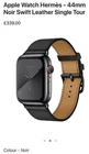New Apple Watch Hermès Strap - 44mm or 42mm Noir Single Tour Swift Leather. Space grey steel pin. Fits a 49mm, 45mm, 44mm and 42mm watch casing for all Apple Series Watches. New but no box. 49/45/44/42mm Fits 160–195mm wrists. The classic Hermès design. The buckle recalls those on the straps of a horse's girth, a nod to the equestrian heritage of Hermès. Buy from a trusted eBay seller. Listing and template services provided by inkFrog