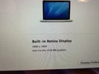 Apple Macbook Pro A1398 i7-4850HQ@2.3GHZ 8GB RAM 256GB SSD MAC OS X 31998XD SERIAL#C02M213MFD58 Password amd123 Battery Condition Normal Battery Cycle Count 173 Light Scratches On Top and Bottom Small Dent On Top Cover AC Adapter Not Included Please Examine Pictures