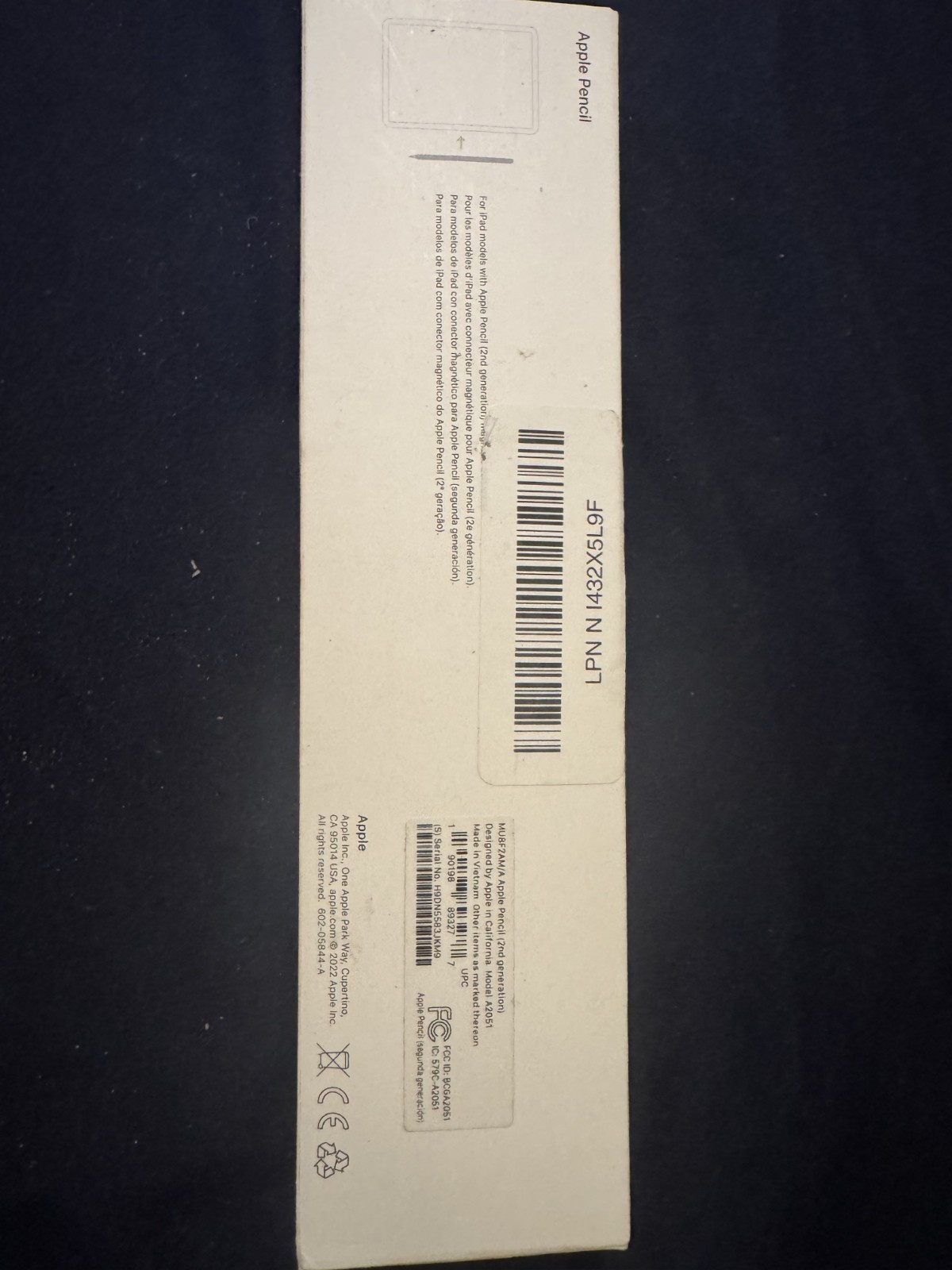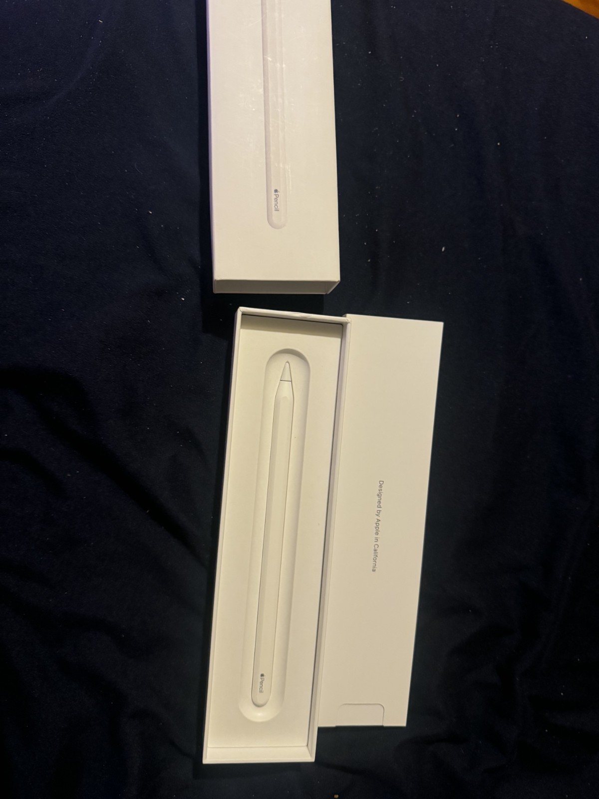 white 2nd gen apple pencil. it was a gift I don't use apple products so it's just an opened box but the pen is unused so pretty much brand new.