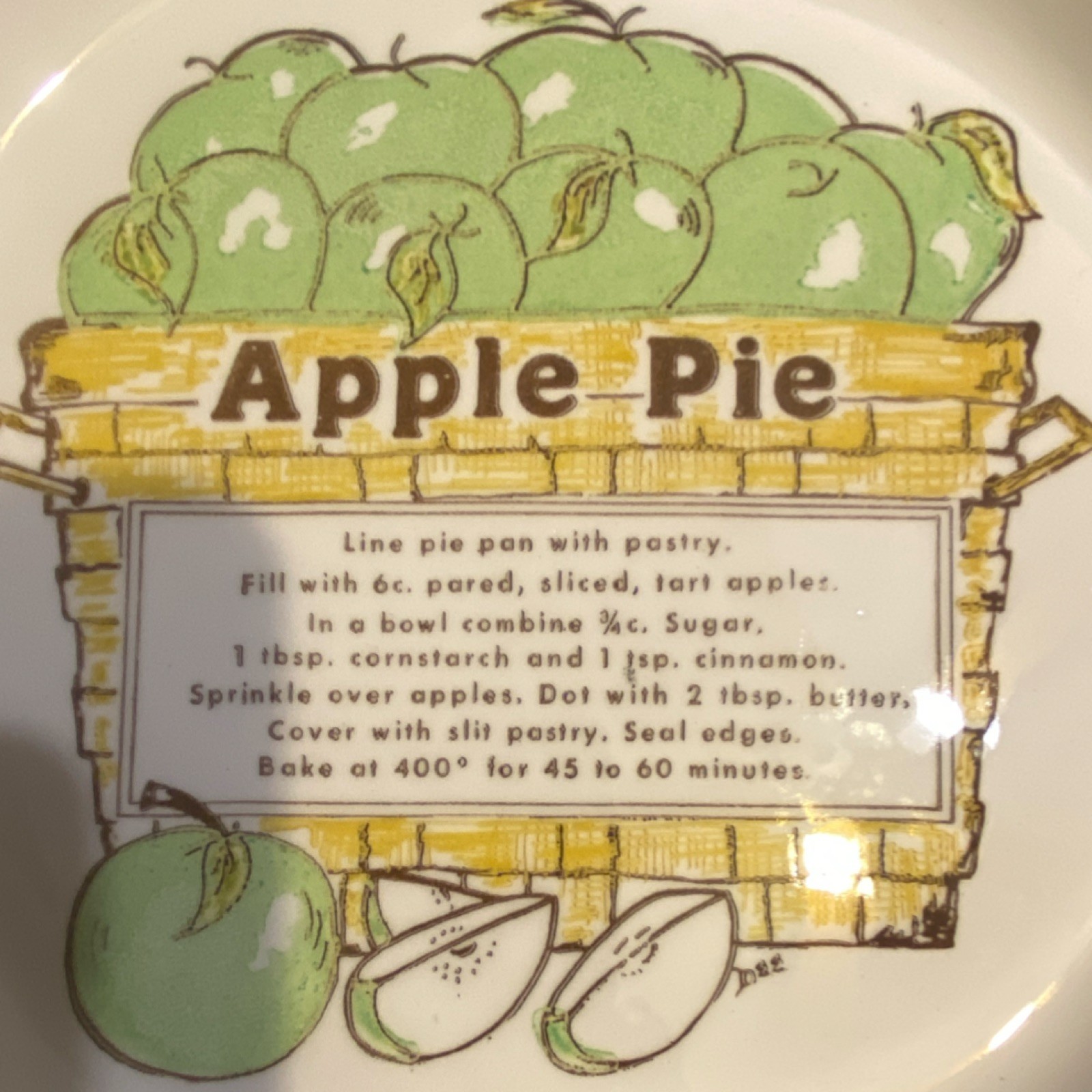 Apple Pie Recipe Ceramic Collectible Pie Dish White with Green Apples