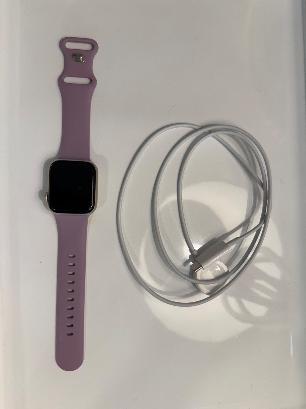 The Apple Watch Series SE 2nd Gen with 40mm aluminum case and GPS features is a sleek and functional smartwatch designed by Apple. With a stylish starlight case color and a comfortable purple silicone band, this watch is perfect for those who value both aesthetics and performance. The Apple Watch OS ensures smooth operation, while the compatibility with iOS makes it a convenient accessory for Apple users. Whether you're looking for fitness tracking capabilities or simply want a reliable timepiece, this Apple Watch is a great choice. Seller pays shipping!