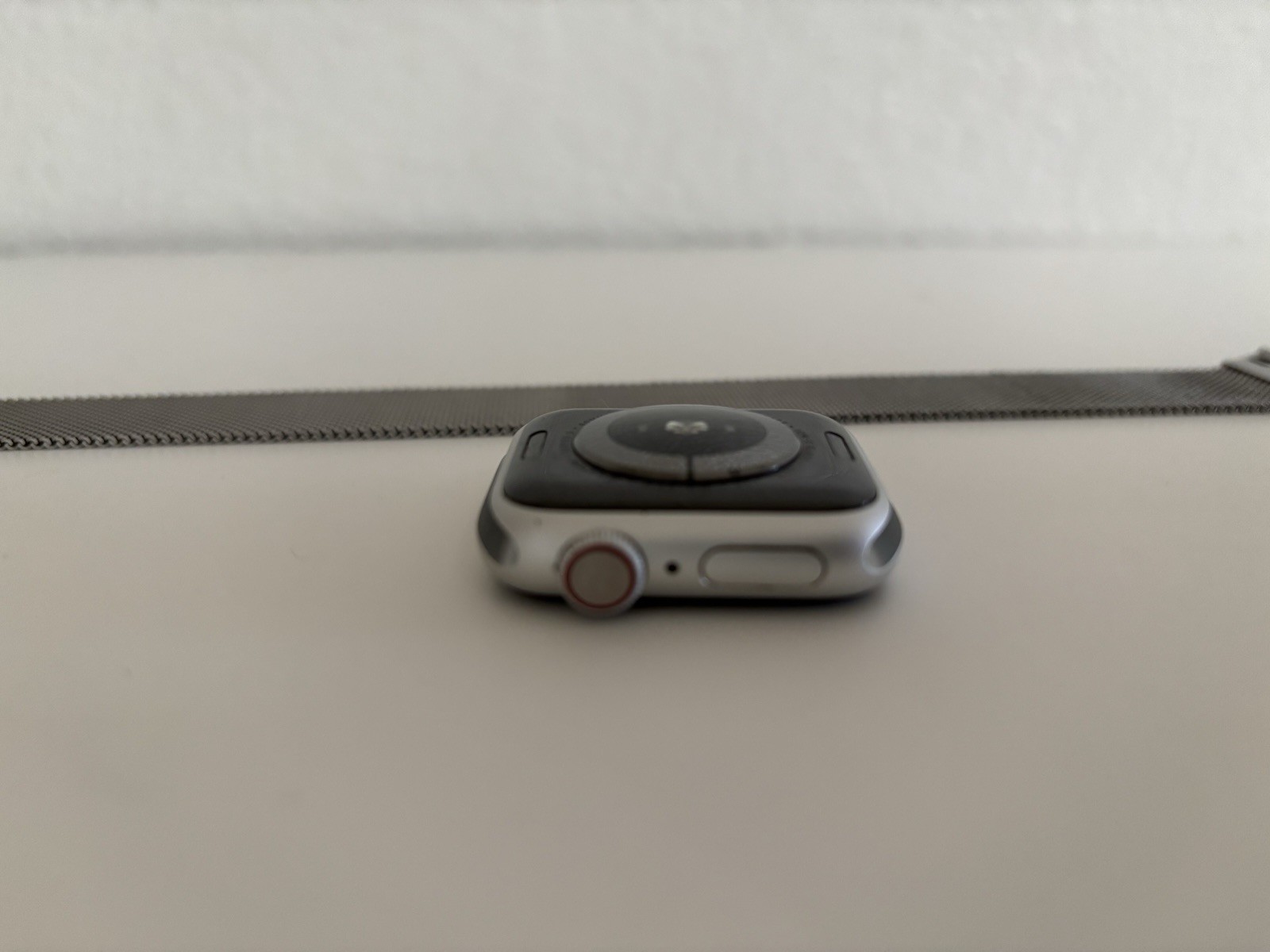 Apple Watch Series 5 featuring a 40mm aluminum case with GPS + Cellular capability. This model includes the always-on Retina display and is compatible with iPhone (requires cellular plan for standalone cellular use). The watch is paired with a stainless steel Milanese Loop band, offering a sleek, adjustable fit suitable for everyday wear or dressier occasions. • Model: Apple Watch Series 5 • Case Size: 40mm • Connectivity: GPS + Cellular • Case Material: Aluminum • Band: Milanese Loop (mesh metal, stainless steel Milanese, adjustable) • Display: Always-On Retina • Compatibility: iPhone (cellular plan required for cellular features) • Operating System: watchOS (upgradable subject to Apple support) Condition: Very good pre-owned condition. Watch powers on normally. Screen appears clean with light, normal signs of use consistent with age. Band is in good condition and functions properly. Please review photos for cosmetic details. Included: • Apple Watch Series 5 (40mm) • Milanese Loop band (No charger or original box included.) This is a solid option for fitness tracking, notifications, calls, and everyday smartwatch use at a more affordable price point than newer models.