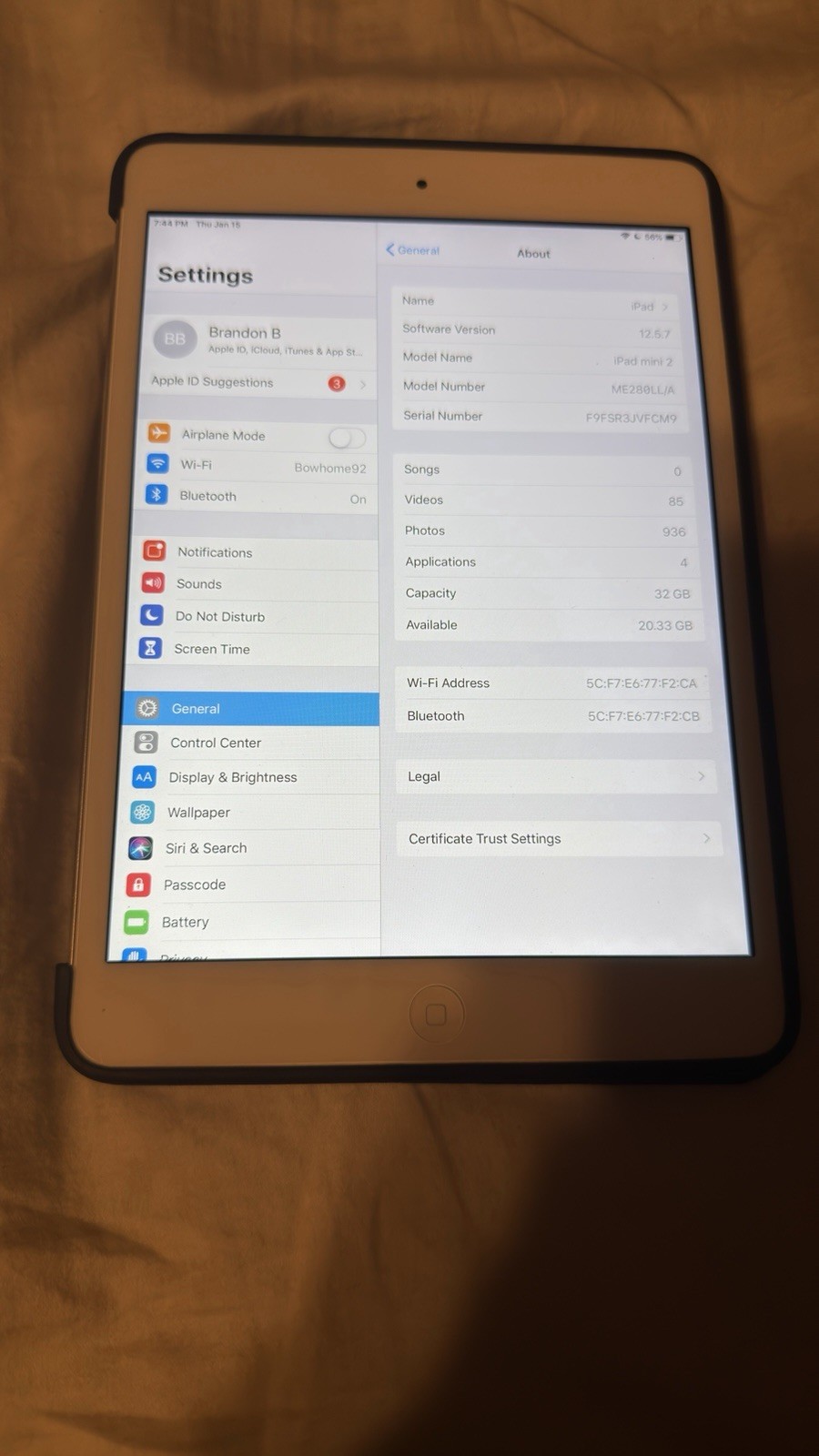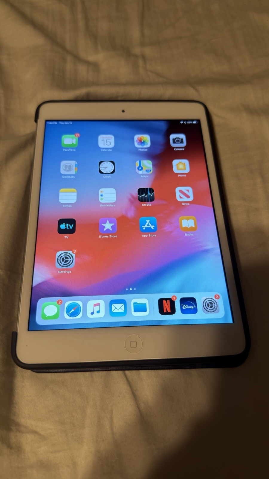 The Apple iPad Mini 2 A1489 with 32GB storage, Wi-Fi capability, and a 7.9-inch screen is a sleek and compact tablet designed by Apple. Featuring a silver and white color scheme, this device offers a great balance of portability and power for users who need a versatile device for both work and entertainment. The iPad Mini 2 provides a smooth and responsive user experience, making it a popular choice for those looking for a reliable and high-quality tablet. in really good condition for its age. Haven’t noticed too many battery issues still held a charge for me
