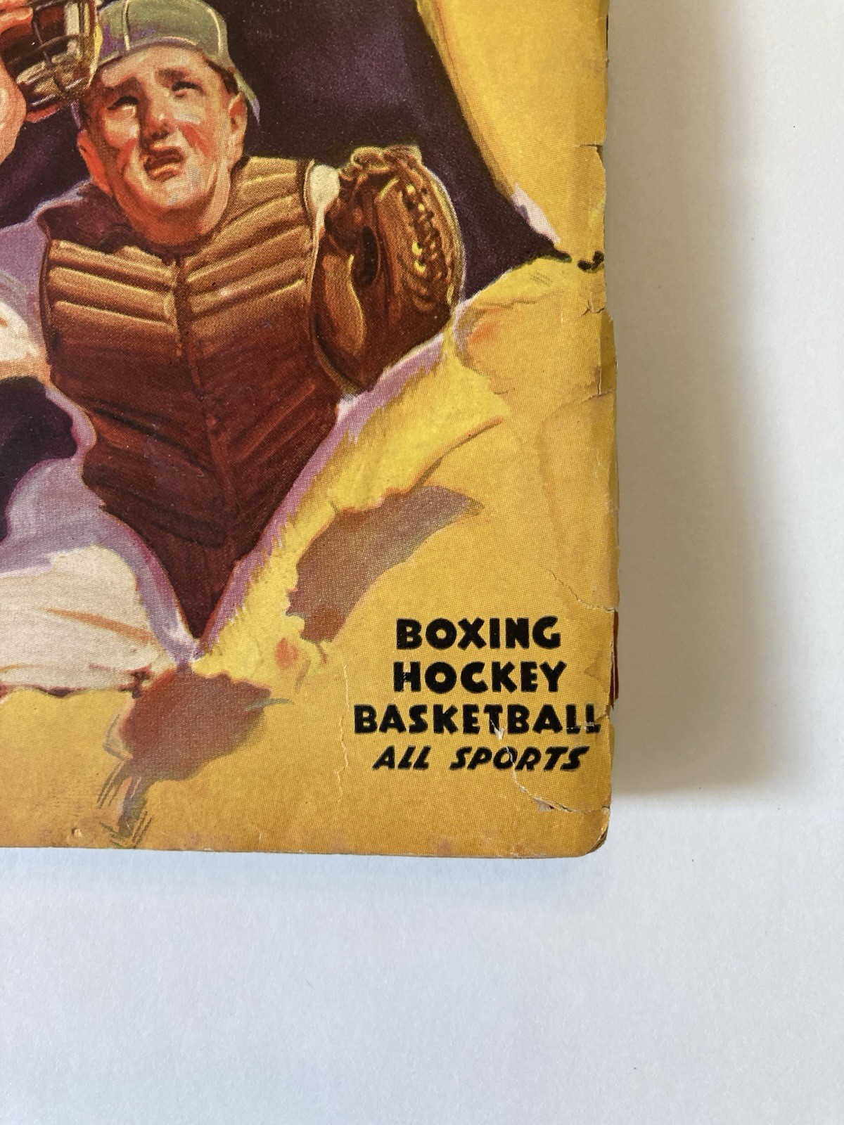 The product is a vintage baseball sports novel from April/May 1937, Vol 1 No. 1, featuring Dizzy Dean, a prominent baseball player. The magazine is a valuable piece of sports memorabilia for collectors interested in the history and legends of baseball in the 1930s. With a focus on both boxing and hockey, the magazine provides a unique perspective on various sports from that era, making it a valuable addition to any sports memorabilia collection. Plastic bag stored. Normal aging, see photos. Clean. Intact. Spine unbroken. No loose pages. Bin JP 016. JP 16-058
