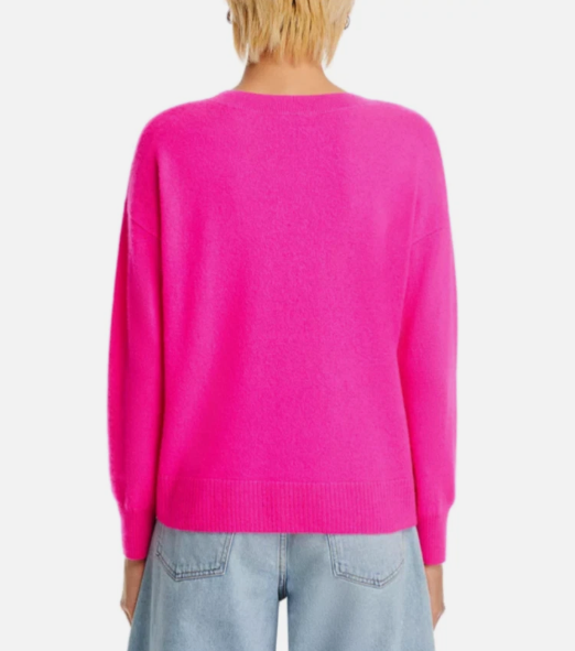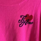 Aqua Designer 100% Cashmere Ti Amo Crewneck Sweater size: Medium color: Pink 100% Cashmere Long sleeve Crewneck Ribbed neck, sleeve, and bottom Ti Amo design on left chest Relaxed fit retail $188 underarm to underarm 23" collar to bottom 25" C7
