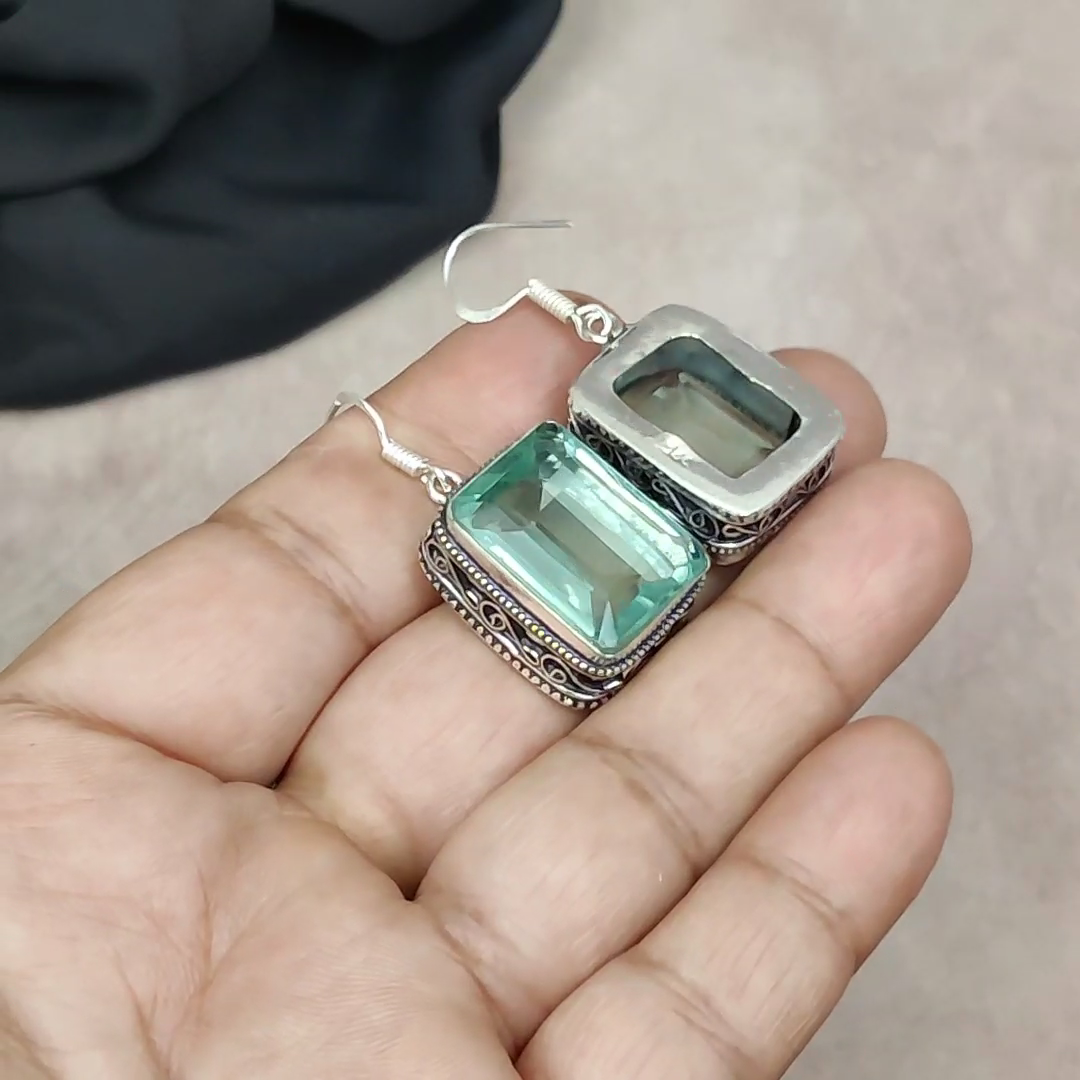 Aquamarine Dangle Earrings in 925 Sterling Silver Handmade Gift Jewelry