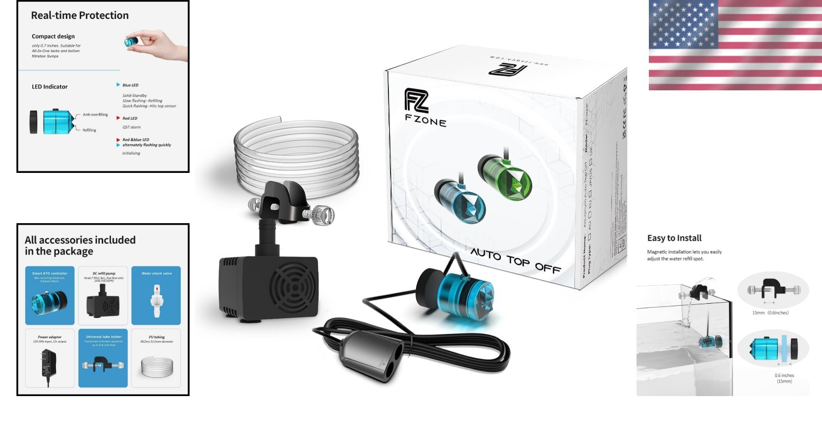 Aquarium Auto Top Off System with Dual Optical Sensors for Reliable Water Levels ‹ › ‹ › ‹ › ‹ › ‹ › ‹ › ‹ › ‹ › Aquarium Auto Top Off System Reliable Water Levels with Dual Optical Sensors Product Features: Compact Dimensions: Small and sleek at only 0.7 inches, making it perfect for installation in All-In-One tanks and bottom filtration sumps. Precision Monitoring: Equipped with dual optical sensors that measure water levels in real-time, ensuring fluctuations are less than 0.6 centimeters. Innovative Technology: Features EFTT (Extended-Filling-Time Technology), AFT (Anti-fluctuation Technology), and upgraded QST 3.0 (Quick-Security Technology) for enhanced reliability. Recognizes Tank Size: EFTT customizes the filling duration based on your aquarium’s dimensions. Real-time Notifications: QST alerts you when the ATO process concludes, preventing overfilling and water wastage. Durable Accessories: Strong magnets support aquarium wall thickness up to 0.78 inches (20mm), accompanied by a check valve that prevents backflow. Powerful Pump: A 74-gallon-per-hour water pump capable of lifting water up to 2 meters, ensuring seamless delivery to even the largest aquariums. Benefits: Maintains Optimal Water Levels: Keep your aquatic environment stable and healthy for your fish and plants. Saves Time: Enjoy your hobby without the mundane task of daily manual refills. Comprehensive Support: 2- and 24/7 Customer Support ensure peace of mind. Perfect for Holidays: Travel with confidence knowing that your aquarium is being cared for. Why Choose Our Aquarium Auto Top Off System? Imagine a world where you can leave your aquarium unattended, knowing that its water levels are being meticulously maintained. The Aquarium Auto Top Off System provides you with that freedom. With state-of-the-art technology ensuring reliable monitoring and filling, you can rest easy knowing your aquatic life is thriving without the constant worry of evaporation. Whether you have a small or large tank, this compact system fits seamlessly into your setup, allowing you more time to enjoy your underwater paradise. Elevate your aquarium experience today by choosing our Auto Top Off System—clean, efficient, and worry-free. Shipping Free & Fast Shipping - We offer free shipping to most of the USA with a normal delivery time of 3-7 days. However, due to the current situation, additional delivery time (up to 3 weeks) may be required for some items. Alternative Carriers - We may use alternative carriers (e.g. USPS, FedEx, UPS, etc.) to ensure your package arrives safely and on time. Due to the use of multiple carriers, we are unable to provide a tracking number automatically. Handling Time - Orders are processed and shipped within 1-2 business days of receiving cleared payment. Shipping Restrictions - Shipping to Alaska, Hawaii, Puerto Rico, Guam, and other US territories may incur shipping charges or delivery restrictions. Please contact us before ordering, or your order can be refunded/cancelled. State Restrictions - There may be restrictions based on your state of purchase. For example, certain items may not be shipped to California due to state regulations. Contact for Tracking Updates - If you require tracking updates or have any concerns about the delivery of your order, please feel free to contact us, and we will be happy to assist you. Return 30-Day Hassle-Free Returns - We want you to be completely satisfied with your purchase. If you are not, you can return the item within 30 days of receiving it for a full refund or exchange. Easy Return Process - To start a return, simply contact us and we will provide you with a prepaid return shipping label and detailed instructions. Restocking Fee - There are no restocking fees for returns. However, the buyer is responsible for return shipping costs if the return is not due to a seller's error. Refund Processing Time - Refunds will be processed within 5 business days of receiving the returned item in its condition. Payment We accept all major credit cards, PayPal, and Apple Pay for your convenience. Your payment information is secure and encrypted to ensure a safe and seamless transaction. Please complete your payment within 3 days of purchase to avoid any delays in shipping. Feedback Your feedback is extremely important to us. We strive to provide the best products and customer service possible. If you are satisfied with your purchase, please take a moment to leave us a positive review. If you have any concerns or issues with your order, please contact us before leaving negative feedback. We are committed to resolving any problems and ensuring your satisfaction. Contact Us If you have any questions or concerns, please feel free to out to our customer support team. You can contact us through the eBay messaging system. We are available Monday to Friday, 9:00 am to 5:00 pm EST, and we will do our best to respond to your inquiry within 24 hours. Buy it now and enjoy a pleasant shopping experience! Unit Quantity: 1 Tank Capacity: 74 gal. Type: Auto Top Off Tank Material: Metal Shape: Cube Water Type: All Water Types