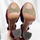 Aquazzura Mira Velvet Platform Sandal Heels Burgundy Red EU 40 - Excellent pre-owned condition - wear to bottom of sole, light wear to velvet on the heel - 6in heel, 1.5in platform Open toe, knot detail, ankle strap with buckle closure, platform, block heel. Burgundy red velvet. Cocktail, party, event, night out, semi formal, date, evening, gala, holiday, glam, glamorous, celebrity, dressy.