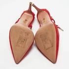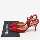 Our eBay Store About Us Contact Us Add to Favorite Sellers Aquazzura Red Suede Matilde Ankle Wrap Pumps Size 40 Vibrant in red suede, the Matilde pump from Aquazzura features slender ankle ties and a classic pointed toe. A striking style with graceful movement. Product Details Brand Aquazzura Color Red Includes The Luxury Closet Packaging Outsole Length 26 cm Outsole Width 8.5 cm Size 40 Certified by The Luxury Closet This item has gone through a detailed authentication process overseen by our experts. We offer a lifetime guarantee of authenticity on all our items. How We Check The in-house team of experts at The Luxury Closet is highly trained to verify the authenticity and the condition of the luxury products. They ensure that only 100% authentic items are put on sale.The evaluation process is unique with its own mix of assessment criteria and differs according to the category. Each item is evaluated based on the following combination of hallmarks, hardware, stitching, symmetry, material, craftsmanship, stamping, codes, hologram stickers, and packaging. Our authenticators also check if the items have been modified or amended (e.g., aftermarket diamonds, replaced batteries, repaired bags, etc.) International Buyers Import duties, taxes and charges are not included in the item price. These charges are the buyers responsibility. Please check with your country’s customs office to determine what these additional cost will be prior to buying.
