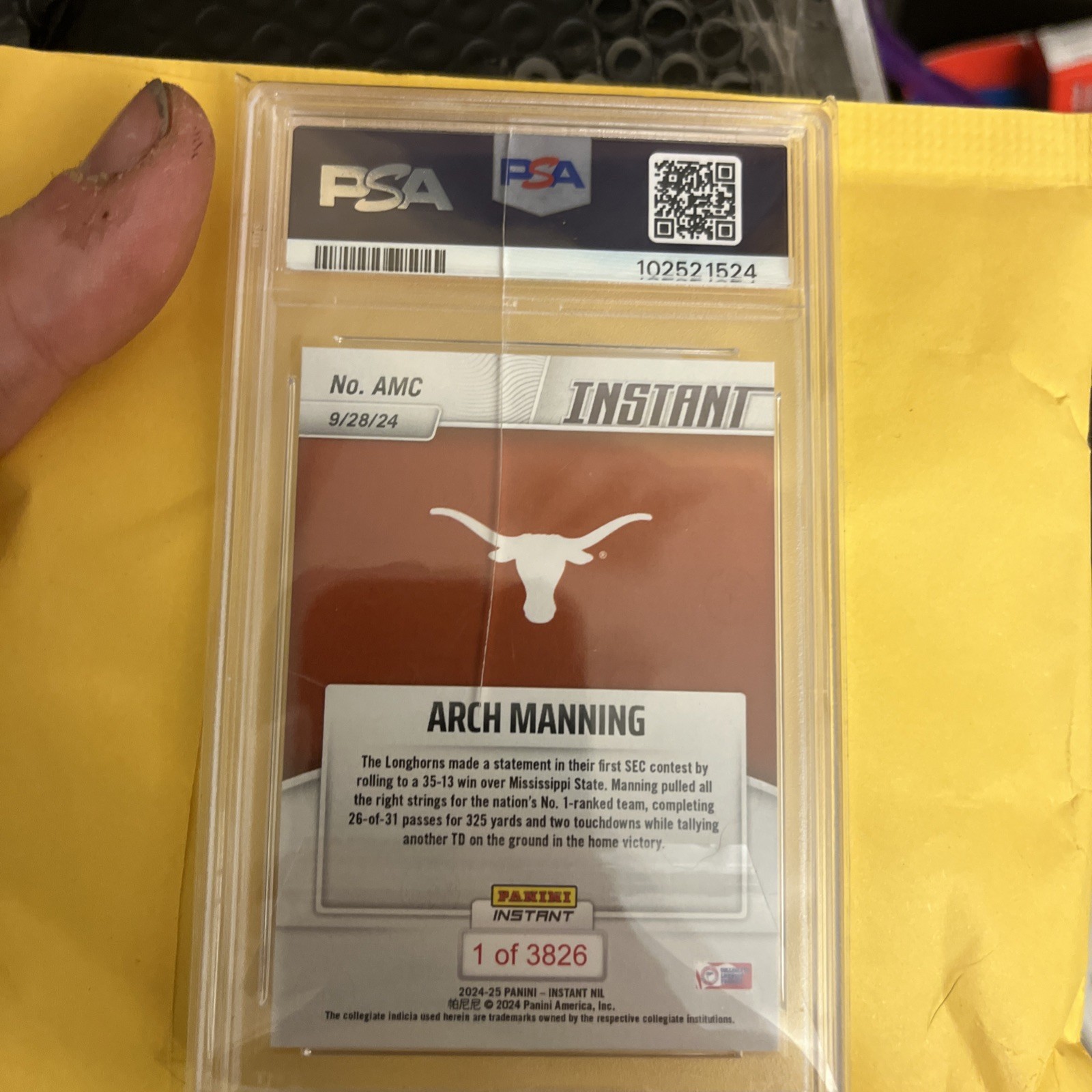 Has crack in it from delivery it was on top of the other cards that I got. I’m sure somebody knows a person who works at PSA that can re-slap that for them no problem or anybody else that just would like a arch manning there’s no damage to the card so it’s still definitely a nine mint.
