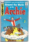 "Around the World with Archie," 25¢ cover, stories include "Rise and Shine," "Please Be Seated," "Mummy Knows Best," "Water Boy," "U.N. Antics," "By Hook or Cook," "And So To Bed," "Father Knows Least," "Washington Bound," "All Around the Town," "Flyin' High," and "All's Well That End!" • Archie Giant Series #29 • October, 1964 issue • Bagged and boarded, of course. Condition: Low grade. Mild wear on cover edges and pages. No missing pages, no cut-outs. Some tracing of the word "Archie" on the cover. Light pen mark at the top of an interior page. Writing on last page (some pencil math and some pen used to fill out a coupon.Spine solid. Pages cream-colored. Colors sharp. Free shipping. Professional packaging always, since 2003.