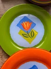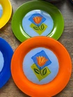 Arcoroc Matys Painted Tulip Glass Set Of 4 Dinner Plates , France . Dishes are in very good condition. They measure 10.5 inches.