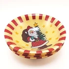 Arcoroc Glass Soup Cereal Bowls Santa Christmas Tree 6 1/2" Lot Of 4. Red strips with a gold tone background made in france . Bowls have a Transferware design applied on bottom side of glass bowls measuring 6 1/2" across 1 3/4" deep. Bowls have very little ware no chips or cracks in very good condition. Lot of 4 all included