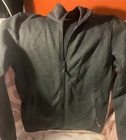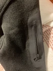 Experience the perfect blend of style and comfort with the Arc'teryx Black Trim Fit Fleece Jacket, tailored for a women's XS. Crafted from high-quality polyester, this basic jacket is designed to keep you warm during the chillier days of fall, winter, and spring. Its sleek grey color is complemented by subtle embroidered accents, giving it a sophisticated yet understated look.The jacket features a full-zip closure, allowing for easy layering and a customizable fit. The regular size type ensures a comfortable and flattering fit, while the fleece fabric provides both warmth and breathability. Whether you're embarking on an outdoor adventure or simply looking for a cozy layer, this jacket is an excellent choice for your wardrobe. there is a small embroidery on the sleeve, barely noticable