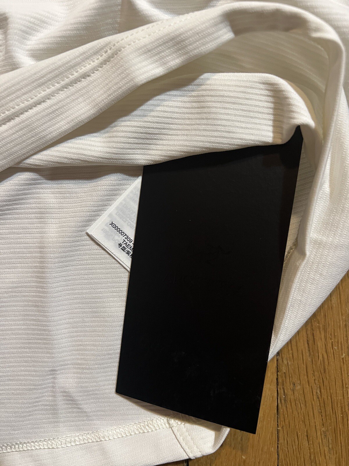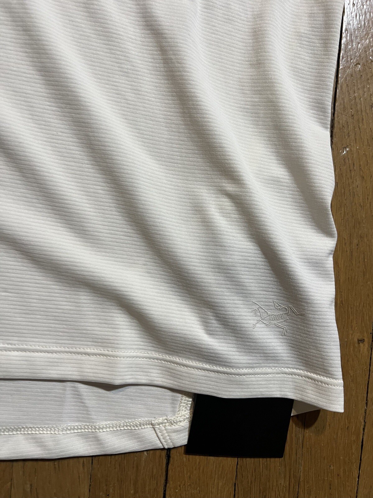 The Arc'teryx Women's Taema Crew Short Sleeve T-Shirt is designed for active wear in a size Large. Made from Arctic Silk fabric in a stylish White Heather color, this shirt provides a comfortable and breathable fit for women. With a regular fit and short sleeves, it is perfect for various outdoor activities or casual wear. The brand Arc'teryx is known for its high-quality performance gear, making this shirt a reliable choice for those seeking durable activewear.