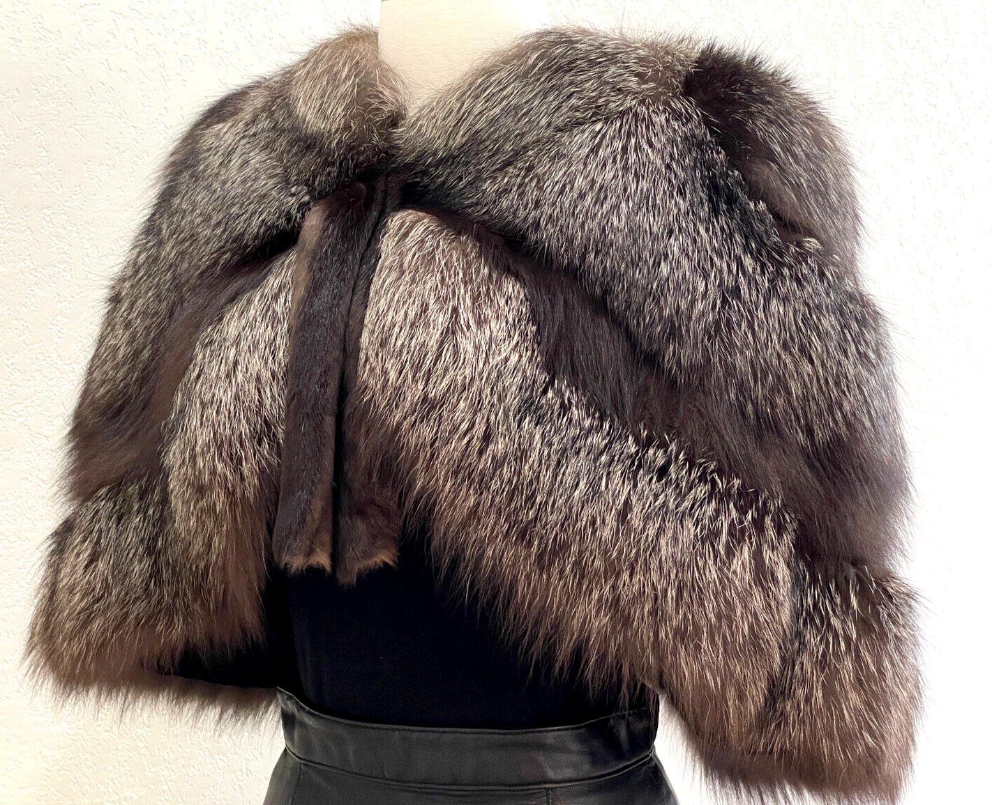 Please check out my other items ! BONWIT TELLER fifth avenue New York Gorgeous Vintage Silver Fox Fur Cape Size S No pockets. Hook & eye closure No name monogram on the lining Back length 16" at the widest part Shoulders 16" Raw edges on Fur Ties (Last picture) Some wear to guard hair at shoulders and around the neck line (see pics) Otherwise in Excellent Vintage Used Condition Please ask questions before buying. I do not accept returns. Please see all the pictures for details. Comes from very clean smoke free home. Please check my feedback comments, ask any questions, and bid with confidence! Thank You! Have a Wonderful Day!