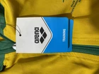 Official Australian Para Swim Team Jacket by Arena, designed for the Para Swimming World Championships in Mexico. This high-quality jacket features the official team logo and national colors, making it a standout piece of authentic team merchandise. Details: • Brand: Arena • Team: Australian Para Swim Team • Event: Para Swimming World Championships, Mexico • Features: Official team logo, national colors, lightweight, breathable design Perfect for collectors, swimming fans, or anyone looking to represent Australia at international sporting events. This jacket is a rare opportunity to own a piece of swim history! Ideal for training, travel, or showing your support for Australian athletes. Condition: (NEW) Size: (XXL)