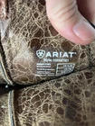 The Ariat Dahlia Snip Toe Overlay Cowboy Boot in Women's size 9.5B is a stylish and trendy boot designed for those who love a western flair. With a square toe and pull-on closure, it offers both comfort and convenience. Made of high-quality leather, this brown boot features a unique dahlia character design that sets it apart from other cowboy boots. Perfect for adding a touch of personality to any outfit, this boot from Ariat is sure to become a staple in any woman's wardrobe.