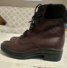 These are Ariat women's boots in brown leather, featuring a combat style design. The boots are in US shoe size 6 and are ideal for those looking for durable and stylish footwear for various occasions.