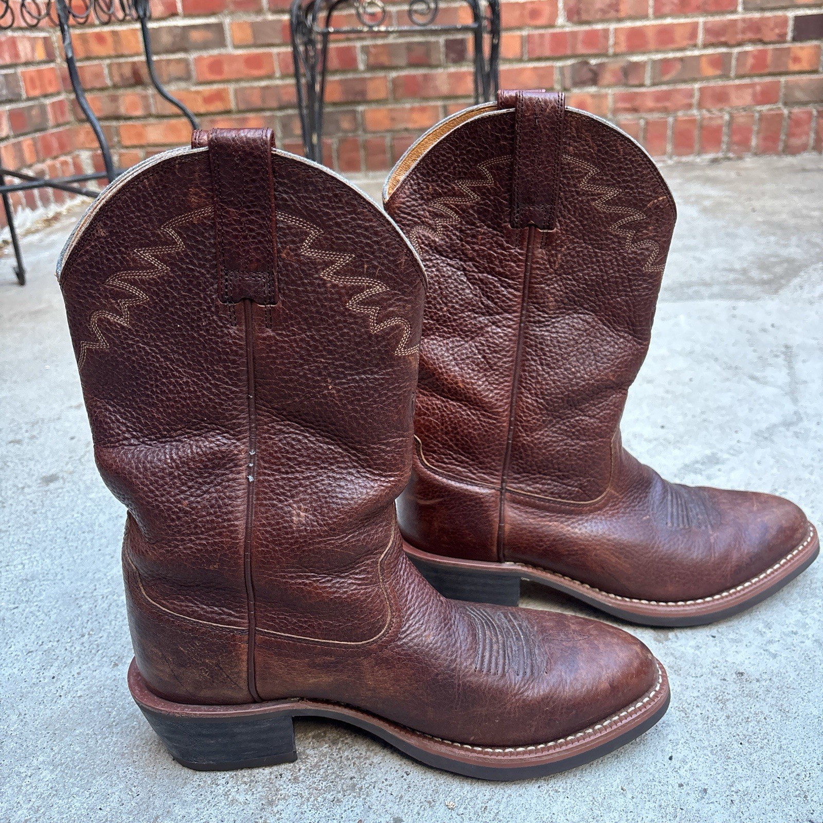 The Ariat Men’s 8.5D Western Cowboy Pull-On Boots in style 33627 are a high-quality and stylish choice for any cowboy-inspired look. Made from brown leather with a square toe design, these boots feature a convenient pull-on closure for easy wear. The outsole and upper material are both leather, providing durability and comfort for any adventure. With a classic Western theme, these boots are perfect for adding a touch of rugged masculinity to any outfit.
