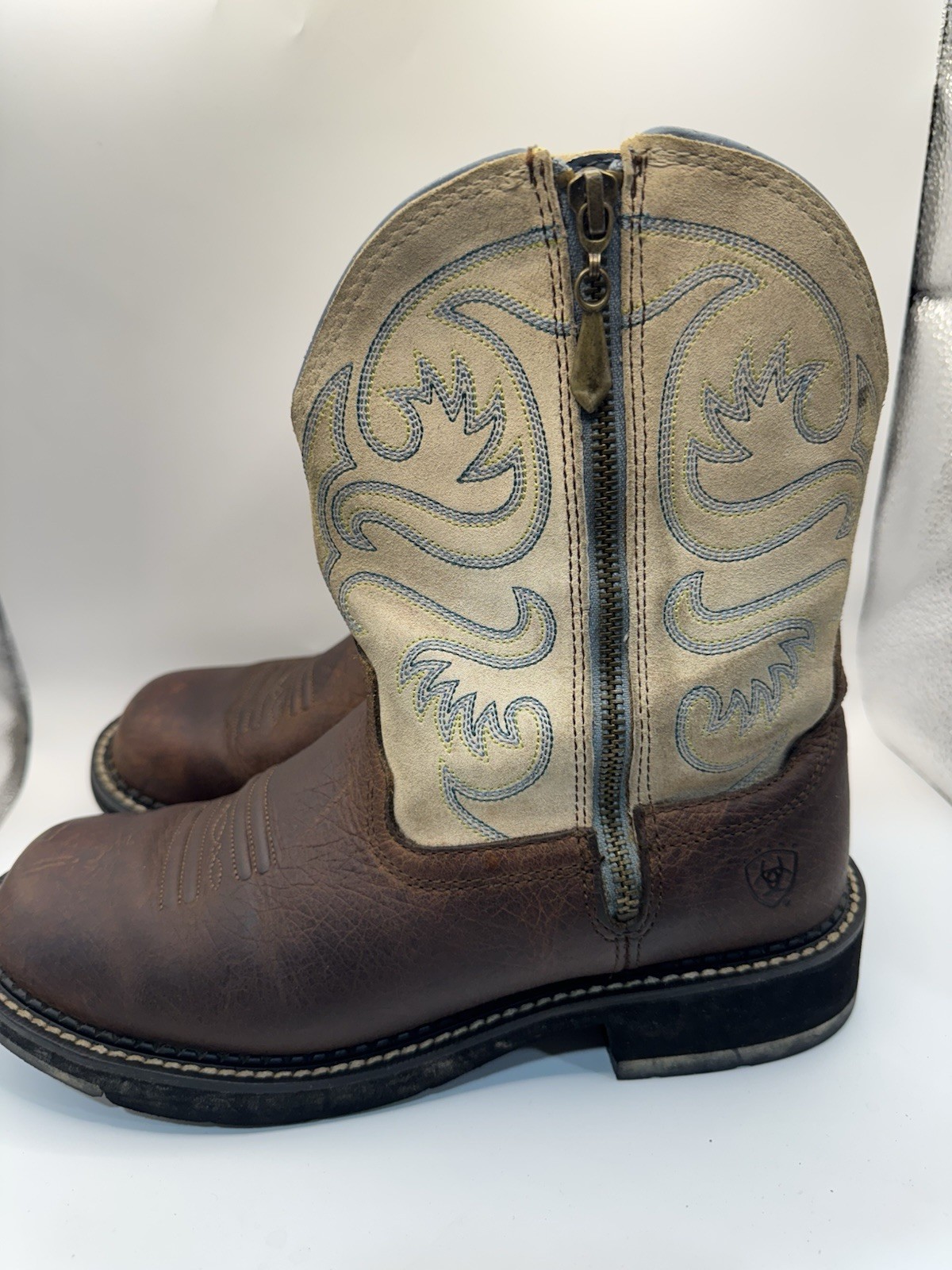 Love these Ariat boots—super comfy right out of the box! The embroidered details add a fun pop of color, and the low heel makes them easy to wear all day. Great traction and just enough cushioning for walking or working. The leather is soft but sturdy, and the pull-on design makes them a breeze to slip on and off. Perfect for casual wear or adding a Western vibe to any outfit. Definitely worth the investment!