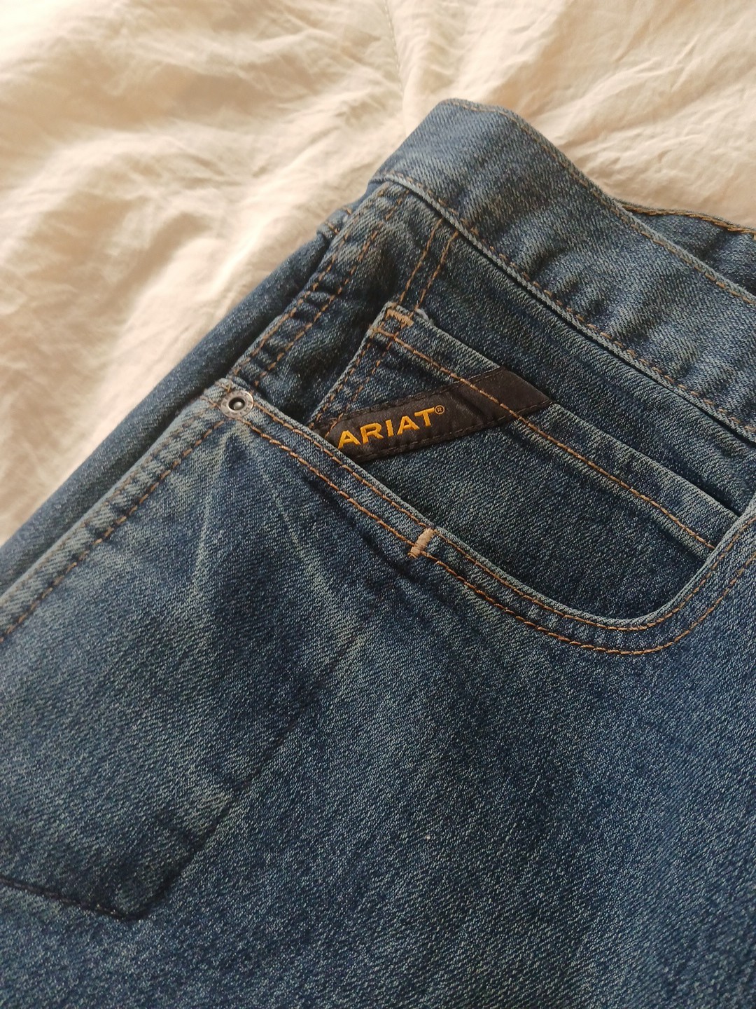 The Ariat Rebar M4 Low Rise Boot Cut Jeans in size 40x30 are a stylish and durable pair of men's jeans in a dark wash blue color. Made of cotton denim fabric with a solid pattern, these jeans feature a zip and button closure, 5-pocket design, and a bootcut style. The jeans also have a medium wash, logos as accents, and are machine washable for easy care. With a classic cowboy theme and practical features like pockets, these jeans are versatile for all seasons and can be worn for casual or dressier occasions.