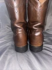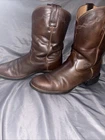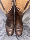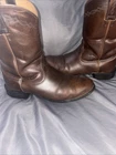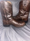 Ariat Boots Size 11D ATS Technologies Advanced Torque Stability Conditioned. These mid-calf western style boots feature a solid brown leather upper material with stitching and roping branded accents. The round toe shape and pull-on closure make them easy to wear, while the waterproof rubber outsole and leather insole provide comfort and stability. The Ariat ATS PRO 54756 boots are designed for torque stability and feature ATS technologies. They are perfect for men who need reliable footwear for work or outdoor activities. The boots are pre-owned, but their condition is excellent, and they are ready to be worn.