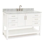 Powered by Frooition Top Products Kitchen Bathroom Lighting Fans Hardware Decor & Organization Ariel S055SCW2OVO Magnolia 55" Free Standing Single Basin Vanity Set with Cabinet and Marble Vanity Top Overview Item Description Our Magnolia bathroom vanity collection is handcrafted of solid wood to ensure quality and durability. By combining a top drawer, middle open shelf, we've created a functional piece for any bathroom. The open shelf at the bottom is a great place to store your accessories or keep toiletries within easy reach. A wide variety of options are available such as countertop material, sink shape, and cabinet color. Included Components: Wood vanity cabinet with 2 doors and 6 drawers Marble vanity top with a single sink and backsplash Faucet is not included and must be purchased separately Cabinet Features: Constructed from wood providing a lifetime of durability Free standing installation – vanity is seated on the floor with wall anchors, providing a functional design Double door design provides easy access to storage space 6 full extension drawers with soft-close slides allow for organized storage Soft close drawer slides operate on smooth ball-bearings and prevent drawers from slamming shut Vanity will need to be assembled Vanity Top Features: Marble vanity top includes 1 sink 3 pre-drilled faucet holes Center drain location provides optimal draining capability Vanity top includes matching backsplash Cabinet Specifications: Cabinet Width: 54" (from left to right) Cabinet Height: 34-1/2" (from top to bottom) Cabinet Depth: 21-1/2" (from front to back) Number of Doors: 2 Number of Drawers: 6 Vanity Top Specifications: Vanity Top Width: 55" (left edge to right edge) Vanity Top Depth: 22" (front edge to back edge) Backsplash Height: 4" Number of Basins: 1 Sink Measurements: 19-5/8" L x 16" W x 8-1/4" H Sink Basin Measurements: 17-3/4" L x 14-1/8" W x 7" H Number of Faucet Holes: 3 Faucet Centers: 8" (distance between the installation holes for the faucet handles) Why Choose BuildInc? OUR PROMISE TO YOU About Us At Build, we promise to provide the best selection we can, most competitive pricing, and unmatched customer service. Our store has quality home improvement products from trusted manufacturers like Moen, American Standard, Delta, Kraus, Kichler, Progress Lighting, Schlage, Kwikset, Baldwin, Broan, NuTone, Air King, and Rev-A-Shelf. With over 200,000 home improvement products for you to choose from, we have just what you need to get your project done. Fast & Free Shipping We promise to make it our priority to get you your items as fast as we can. We ship from 440 warehouses around the country, ensuring that your product will get to you as soon as possible. We know you're eager to get your hands on your new purchase, we would be too. As a bonus, most items ship for free. Returns We are happy to accept returns of unused or defective items for a refund within 30 days from the date of delivery. For returns outside 30 days, please contact our Customer Service team to go over our options. For full details, please view the Shipping and Payments tab above. To initiate a return simply go to the eBay Returns Portal and submit a return request. We ask that all items be returned with all original components via a traceable method. Once your return is received and processed, we will quickly get your refund or replacement issued. If for any reason you are unsatisfied with your purchase or for product or warranty questions, please contact Customer Service team for assistance. More Items! View more great items Wyndham Collection WCF414160D-QTZ-US3MXX Strada 60" - Dark Gray / Giotto Quartz $1,853.92 Wyndham Collection WCF292960D-QTZ-UNSM58 Miranda 60" - Dark Blue / White Quartz $1,910.29 Wyndham Collection WCF292960D-QTZ-UNSMXX Miranda 60" - Dark Blue / White Quartz $1,785.92 Wyndham Collection WCF414160D-QTZ-UNSMXX Strada 60" - Light Green / Giotto $1,853.92 About Us | Shipping | Returns | Contact Us | FAQ | Collections | Special Offers! Powered by Frooition Frooition Frooition | No-js Template | eBay design, eBay store design, eBay shop design, eBay template design, eBay listing design (ver:froo_no_js) This listing is currently undergoing maintenance, we apologize for any inconvenience caused.