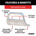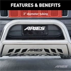 $ImageURL1$ Aries 35-5005 Polished Stainless Steel 3" Bull Bar for 11-20 RAM 1500 / Classic PART NUMBER: 35-5005 BRAND: Aries DESCRIPTION Polished 3" Stainless Steel Bull Bar Brand Aries Part Number 35-5005 UPC 812410019103 Fitment Direct Fit The ARIES 3" bull bar is made for those who face the uncertain road without fear. It features a vehicle-specific design for a custom fit, a pre-drilled crossbar for mounting LED lights and a durable construction to complement the look of your truck or SUV. This model is made with 304 stainless steel for maximum rust resistance and has a polished finish for a bright, clean accent. This bull bar fits select model years of the Ram 1500, Ram 1500 Classic and Dodge Ram 1500 (see application info to verify fitment) . Features 3" diameter, heavy-wall tube design 304 stainless steel construction to be strong and truly rust-resistant Mirror-like polished stainless steel finish for a bright, clean accent Two pre-drilled holes in the crossbar for mounting LED light bars or work lights Removable, brushed 304 stainless steel skid plate deflects small road debris No-drill, vehicle-specific application for a custom fit Limited lifetime warranty (one-year parts) Note: Includes bull bar and mounting hardware Bull bar may interfere with forward-facing cameras or sensors Product Specification Part Type Bull Bar Shipping Weight 35.000 Finish Polished Stainless Material Stainless steel Application Vehicle-specific Diameter 3 IN Vehicle Fitment Year Make Model Style 2009 2010 Dodge Dodge Ram 1500 Ram 1500 ALL, Excluding Rebel Package ALL, Excluding Rebel Package 2011 2012 2013 2014 2015 2016 2017 2018 2018 2018 2018 2018 2018 2018 2018 2019 2020 Ram Ram Ram Ram Ram Ram Ram Ram Ram Ram Ram Ram Ram Ram Ram Ram Ram 1500 1500 1500 1500 1500 1500 1500 1500 1500 1500 1500 1500 1500 1500 1500 1500 Classic 1500 Classic ALL, Excluding Rebel Package ALL, Excluding Rebel Package ALL, Excluding Rebel Package ALL, Excluding Rebel Package ALL, Excluding Rebel Package ALL, Excluding Rebel Package ALL, Excluding Rebel Package Laramie Longhorn Laramie Limited SLT Special Service Sport ST Tradesman ALL All
