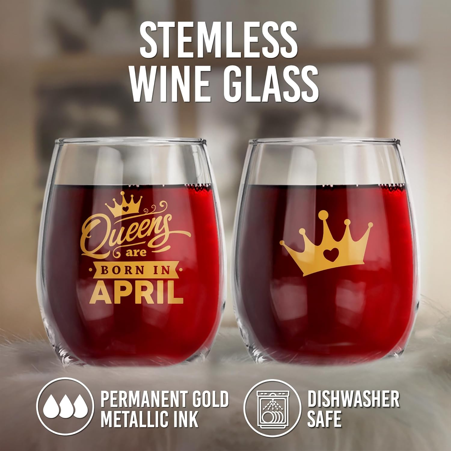 Store New Arrivals Add to Favorite View Feedback Contact Fast deliveries to the customer's home Quality customer service John Make the customers happy! Queens Are Born in April - 21 Oz Stemless Wine Glass - Aries and Taurus Birthday Gifts for Women - Happy Birthday Queen Gifts for Moms, Best Friends, Sisters, Wife Description APRIL BIRTHDAY QUEEN: The best gift for the 21st, 30th, 40th or 50th, or any other momentous birthday, for women born in April, under the astrological / zodiac sign of Aries or Taurus. This is a unique zodiac sign gift for your wife, sister or girlfriend celebrating their birth month! EXQUISITE APRIL BIRTHDAY GIFT FOR WOMEN: This is an excellent funny birthday present for a true Queen, mom, sister, friend, relative, or coworker. If you are not fully satisfied with our unique April gifts for women, we offer a money-back guarantee so that you can buy these zodiac sign wine glasses with confidence. WINE GLASS CAPACITY: This large stemless "Queen's Birthday" wine glass holds a generous 21 ounces, making it perfect not just for wine, but for a variety of creative uses. Decorated with gold metallic ink, this delightful gift is sure to put a smile on the Birthday Queen's face. Show your love and wish them a happy birthday with this lovely wine glass, crafted to last for many celebrations to come. QUALITY ARIES OR TAURUS ZODIAC GIFT: Our unique, funny stemless wine glasses are manufactured and decorated in the USA to the highest standard to provide satisfaction for years to come. Its production has undergone strict quality control to ensure that its suitable for long-term use. Our ink is non-toxic, eco-friendly, fired at over 1200 degrees for maximum durability. CRAFTSMANSHIP: Our novelty glasses are decorated in a family-owned workshop, ensuring each piece is crafted with care and attention to detail. Each wine glass undergoes a thorough inspection and is expertly packed to guarantee that your special Queen's birthday gift arrives in perfect condition. This meticulous process reflects our commitment to quality and excellence, making each glass a cherished keepsake. Product Description Technical Specifications Where Glassware made in USA, printed and decorated in the USA. Restaurant quality, heavy bottom stemless wine glasses. Durability High quality, heat treated glassware, built to last through multiple washings and use. Dishwasher Safe Yes, but hand washing recommended if using harsh detergents. Decoration Method High quality, food-safe inks, fired on at over 1200 degrees, will not crack, peel or fade. Size Generous 21 oz wine glass, holds 40% more than most other competitor wine glasses. PREMIUM STEMLESS WINE GLASS The bowl-shaped stemless design of our wine glass enhances wine flavors that allow you to have a superior drinking experience and enjoy your glass down to the very last sip. In addition, the shape provides more stability which may reduce the risk of spilling your choice of beverage. ELEGANT DESIGN Our wine glass collection features a classy and elegant design printed with high-quality, metallic ceramic inks with superior, built-to-last quality. It is indeed a lovely design that reflects the elegance and sophistication of a true Queen. MULTI-PURPOSE This is ideal for everyday use and is a great gift for many occasions like Birthdays, Engagement/Dinner Parties, Christmas, Wedding Events, and many more. It can also be a perfect addition to your table setting or barware collection. Durable Heat-Treted Wine Glass Buy high-quality, American-made glassware with no lead or harmful additives and printed with food-safe, non-toxic inks. Moreover, these glasses are heat-treated for additional durability. Size and Capacity Our wine glasses hold a generous 21 ounces, which holds 40% more liquid than most competing wine glasses (15 ounces). It has a nice sturdy size suitable for many uses and is ideal for any wine (Cabernet Sauvignon, Bourdeaux, Merlot, Chardonnay, Pinot, or Riesling), cocktail, juice, and soda. Basically, your choice of any beverage. The wine glass is versatile and can even be used for yogurt parfaits, candle holders, and many more. The Perfect Gift for Every Woman's Occasion Need a great present for the Wine Enthusiasts in your life? This stemless wine glass makes the perfect gift to celebrate special occasions and a loved one's achievement while also welcoming a new stage of their life. Treat them to this valuable gift that can surely make them feel loved and appreciated. We also offer Queens-designed wine glasses for every birth month, so you can treat all the women in your life to one of these sophisticated stemless wine glasses that can be used all year round. Main Features 40% Larger Than Competitor Glasses Our novelty A Queen Was Born-themed birthday wine glasses are bigger than the ordinary wine glasses sold in the market. So you can surely make the most out of your every drink. Vibrant Metallic Ink It is printed with high-quality, gold metallic ink that is up to the highest standard. In addition, the metallic ink is fired onto the glassware for permanent application to withstand years of use. Proudly Made & Decorated in the USA Our unique birthday stemless wine glasses are manufactured and decorated in a family-owned workshop in the USA . These are individually inspected and expertly packed with care to ensure that they will arrive in excellent condition. Dishwasher Safe These are dishwasher safe, but it is recommended to clean them often by hand washing , especially if used with harsh detergents to preserve the vibrancy of the finish. Item model number 4636 Style Modern Number of Items 1 Pattern Letter Print Country of Origin USA Embellishment Metallic Gold Ink Theme Zodiac Unit Count 1.0 Count Product Dimensions 3.75"W x 4.5"H Age Range (Description) Adult Finish Type Metallic Gold Ink Specific Uses For Product Cold Drinks, Hot Drinks Reusability Reusable Customer Package Type Standard Packaging Item Weight 7.8 ounces Material Feature Heat Resis