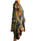 Perfect Condition, Anis. A swing coat jacket, watercolor floral, Monet look print Sz L, fits true to size, 3 button front. Asymmetrical handkerchief hem. Great for lagenlook layering. Tags: Artsy, Art to Wear, Lagenlook, Watercolor, Monet, Teacher
