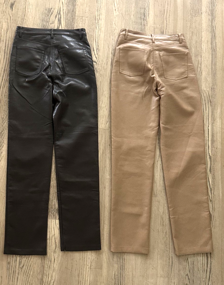 Aritzia Wilfred Vegan Leather Straight Leg Pants Size 4 Brown & Cognac lot of 2