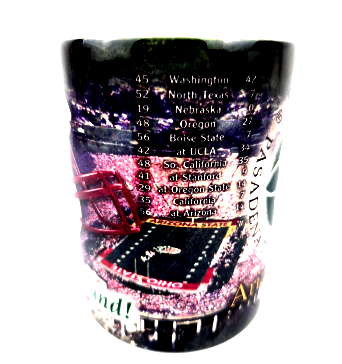Arizona State Rose Bowl 1996 Pasadena Tournament Of Roses Coffee Mug/ PRICE REDUCED $15 TO $12 The product is a multi-color coffee mug featuring the Arizona State University Sun Devils football team from their appearance in the 1997 Rose Bowl. This collectible item commemorates the team's undefeated regular football season and their appearance in the prestigious bowl game, making it a special keepsake for fans of the college football team. The mug serves as a unique piece of sports memorabilia, perfect for celebrating the team's achievement in the Tournament of Roses. We carefully pack each item to prevent breakage. We only charge what the shipper charges and cannot control the shipping costs. We do not accept returns/refunds unless item is not as described per eBay policy or the item arrives damaged or broken beyond anything noted in the condition field or pictures. If you have any questions about any of our listed items, feel free to email us.