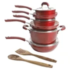 Set of 12 kitchen essentials for a variety of purposes Made from high-grade aluminum to ensure durability Beautiful metallic red finish to create an elegant appeal Step up your cooking game with the high quality KENMORE Arlington Aluminum Ceramic Coated Nonstick Cookware Set in Metallic Red. The cookware combo allows for multiple cooking jobs as the set provides variety of kitchen essentials. The heavy gauge aluminum body is built to handle gas, electric, halogen, and induction heat. Cut down on fats and oils with the nonstick ceramic coating; allowing for much healthier dishes. Create outstanding lemon seared chicken, penne pasta, cheese omelet and many other dishes for guests to enjoy.