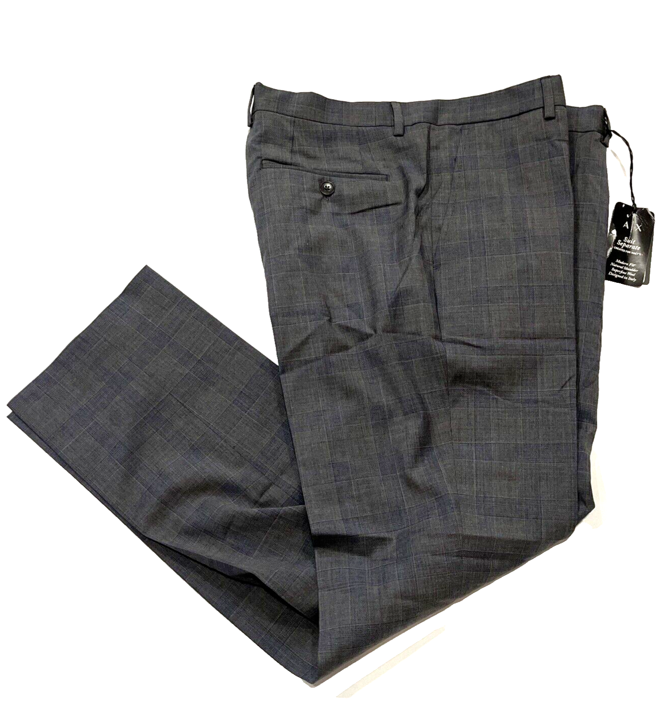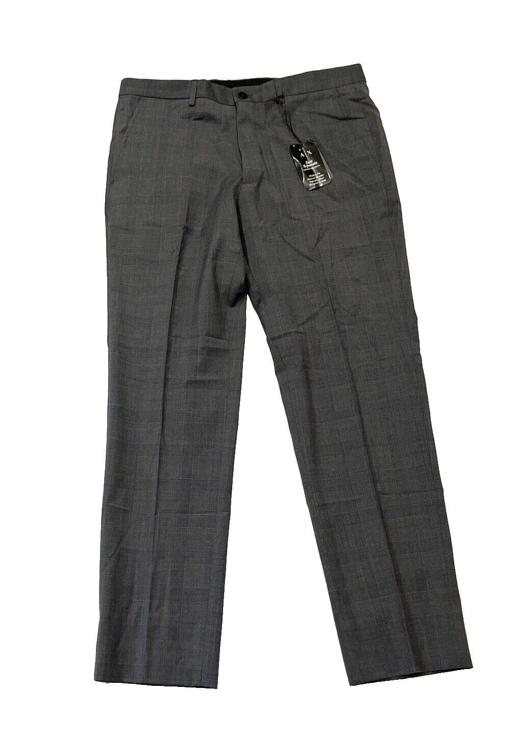 A X Armani Exchange men's Grey Wool Suit Pants size: 34 x 30 color: Grey Slim fit Zip fly with button close Side pockets Crease Flat front Finished hem Welt pockets at back Partially lined S Wool/elastane blend retail $220 R466