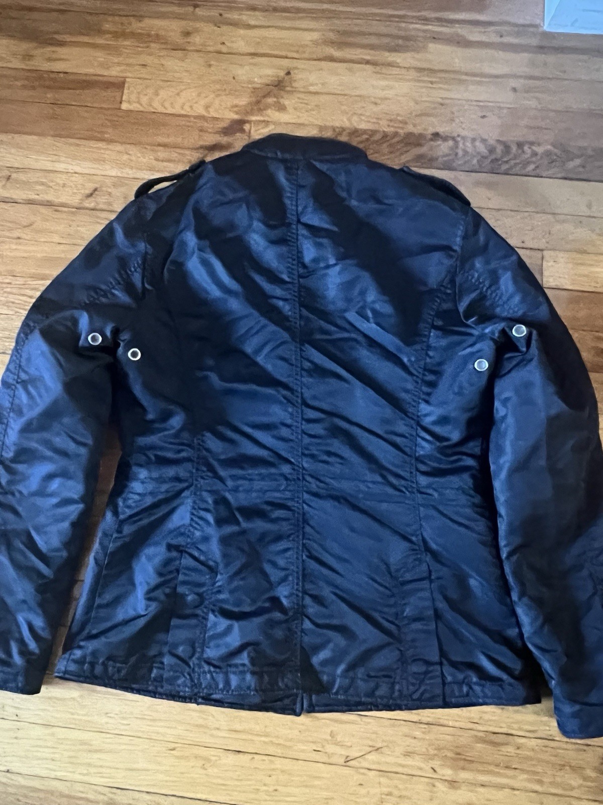Lightly worn, in excellent condition. Beautiful military style jacket with breast pockets.