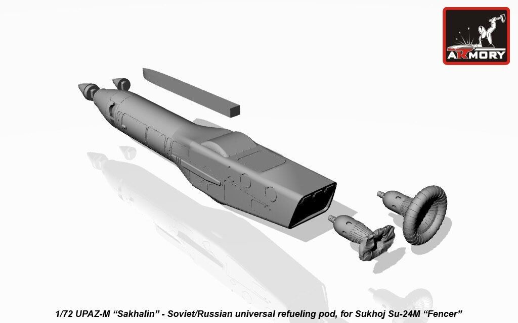 1/72 UPAZ-M “Sakhalin”, Soviet/Russian universal refueling pod Scale: 1:72 High-quality details. Manufacturer: ARMORY Country/Region of Manufacture: Ukraine Paint: Unpainted, Unassembled, Kit do not contain paints and glue. Condition: New in Box Features: Kit Category: Upgrade & detailing sets Weight - 20 g Aircraft Modification - Su-24M Quality set, simple assembly. Suitable for experienced modelers, as well as for beginners. Due to the use of modern production technologies, all the details of the model fit perfectly, thanks to this, you can get an excellent result with minimal effort. ----------- This is a plastic model kit. Assembly and painting is required. Paint and glue is NOT included. Item Type: Scale model kit Commodity Attribute: Assembly The model is a plastic assembly model and needs to be assembled and painted by yourself You need an extra purchase of the glue, paint and so on!