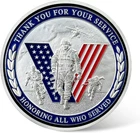 Still wondering what to add in a collection ? A special and long-last memory gift? Or the connection between you and your most important one. You can always find your own treasure here. About the item Our very beautiful military & veteran challenge coin is 1.57 inch in diameter and 0.12 inch in thick, and it has bright colors with 3D engravable craftsmanship and iron with antique sliver plated. Packed individually in a transparent plastic case. It's very easy to carry in your daily life, such as put it in a pocket, purse, backpack, or put it on display on any table or desktop. Military veterans coins one side is engraved with three soldiers engaged in a military operation and the word " THANK YOU FOR YOUR SERVICE , HONORING ALL WHO SERVED ". The other side is engraved the saluting soldier and the word " PROUD OF OUR VETERANS , A HERO IS SOMEONE WHO HAS GIVEN HIS OR HER LIFE TO SOMETHING BIGGER THAN ONESELF ". Nice coin collectibles - perfect for display on a challenge coin rack as decoration alongside military collectible coins of the Army, Navy, Air Force, Marines Corps, Coast Guard and more. It can be carried in a pocket, wallet, even be placed in a coin holder worn as a pendant and office decoration. Meaningful Gift Choice: A meaningful gift for veterans, first responders, Army, Navy, Air Force, Marine Corps, Coast Guard, coin collectors, and all who have served in the military. Ideal as military gifts,Veterans Day presents, graduation keepsakes, birthday surprises, and commemorative gifts to honor the soldier heroes in your life. Owing it, challenging your life, showing your fearlessness, never giving up. SUPER ATTENTION IF THERE HAVE MORE COIN BUYING, MORE DISCOUNT WILL GAIN FOR YOU. Package Each coin will be packed up individually with a plastic case suit in opp bag. Shipping We'll start shipping as soon as possible within 3 business day normally. Tracking will be available after several hours. Feedback We try to make sure ALL customers are satisfied with our services, if you do, a POSITIVE feedback is appreciated, thank you very much. And we always leaving a positive one for customer when item is delivered successfully. Contact Us Feel free to contact us at any time, we're happy to help. You can reach us by eBay or E-mail. Have a nice day! Pls check the item specification carefully before buying it.