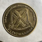 Three Military Challenge Coins. Army Intelligence, Brigade, And Others. Please see pictures for complete details. These coins measure one and a half inches in diameter. You will receive all three. No returns