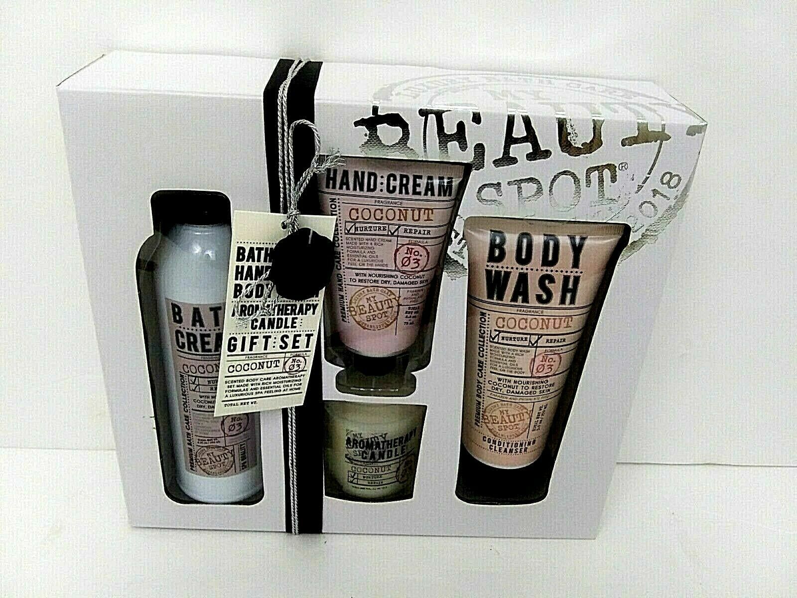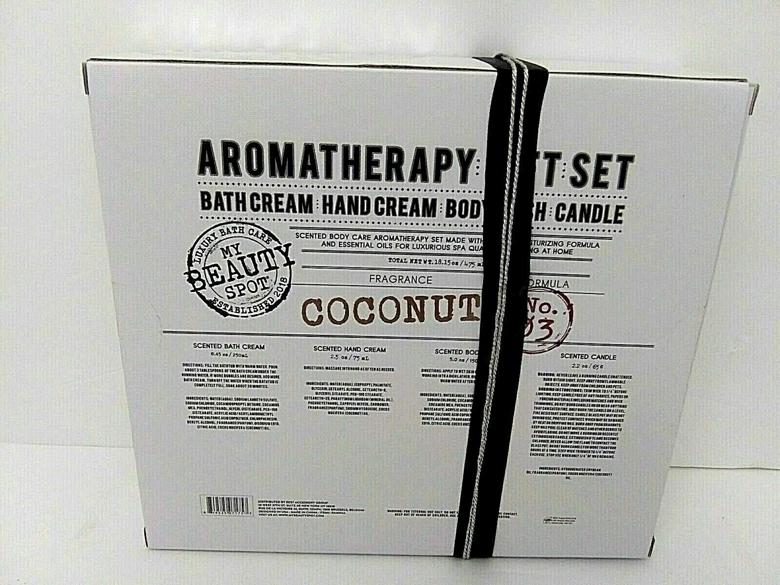 Aromatherapy Gift Set Bath And Hand Cream Body Wash Candle Coconut No.3 IN STOCK Please Read The Return Policy,Descriptions And 1 Day Handling Times Carefully Before Purchasing *** ATTENTION !!! My Best Offer Is Set At $3.00 To $10.00 Less Than The Fixed Price *** *** All Photo's Are Of The ACTUAL Item(S) That You Will Receive Guaranteed *** *** Ships From The U.S *** (1 Or Same Day Handling Time ) **PLEASE READ!! *** Saturday-Cut Off Handling Time Is 7 Pm Eastern Standard Time(Will Ship On Monday) Sunday - Cut Off Handling Time Is 7 PM Eastern Standard Time(Will Ship Next Day On Monday) Mon.-Fri. - Cut Off Handling Time Is 1 PM Eastern Standard Time(If Ordered After 1 PM Will Ship Next Day) *** If Order On A Major Holiday We Will Ship The Day When The Post Office Reopens *** *** Ships USPS Priority Mail Medium Flat Rate Box (Wide Box) *** (U.S) *** Ships EBAY International Standard Delivery (Reg.Box) *** (International) Item Descriptions : Scented Body Care Aromatherapy Set Made With Rich Moisturizing Formula And Essential Oils For Luxurious Spa Quality Pampering At Home Total Net.Wt.18.15 Oz. Established In 2018 Coconut Fragrance **Be Sure To Inspect Your Item Immediately Upon Arrival Please Leave Positive Feedback If You Are Happy And Satisfied With your Purchase If By Any Chance That The Item Is Not As Described Please Contact Us So That We Can Fix It...Please Report The ERROR To Us. Condition- ** Brand NEW *Location : From A Smoke Free And Pet Free Home ! *Payment : ALL TRANSACTIONS MUST BE HANDLED THROUGH EBAY ONLY!! *Shipping : We Ship All Items 1 Or Same Business Day Of Payments Clearing (Including Weekends And Holidays... If Opened ) We Ship Worldwide * Return Policy:Please Read Carefully !! *** 30 Day Return *** ***** Contact Us ****** Please Feel Free to Contact us with Any Questions about the Item Thank You For Stopping By and Have a Great Day!!
