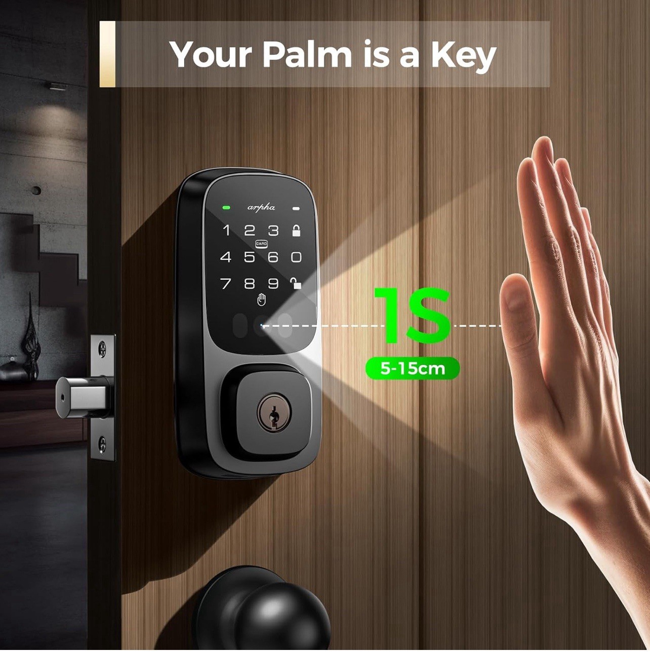 Palm Recognition Keyless Entry Door Lock, WiFi Smart Lock for Front Door, Palm Recognition Front Door Lock Set, Built-in Wi-Fi Deadbolt, App Remote Control, Auto Lock, Support Alexa R01