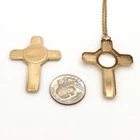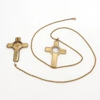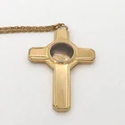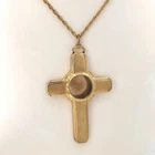 Offered here is this Art Deco 10k rolled gold cross photo or watch case. It can also hold ashes as a mourning locket charm on a 12k gold filled chain. The necklace is 24in long and the cross measures 2-1/4" long by 1-1/2" wide. The opening measures 1/2" in diameter. It is marked anchor 10k rolled gold and weighs 14.4 grams. Any darkness in photos is due to camera reflections. In order to put anything in the cross you will need a pocket watch knife or something similar to open the cross and has a see through covering in the circle. This beautiful 10k rolled gold cross photo watch ashes mourning locket charm necklace is offered here in very good condition.