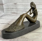 Art Deco Hot Cast Little Gorgeous Mermaid Bronze Sculpture Marble base Artwork Art Deco Hot Cast Little Gorgeous Mermaid Bronze Sculpture Marble base Artwork Condition : This sculpture is in perfect condition. Bronze Dimensions with Marble Base: Height 6" x Width 9.5" Marble Dimensions: Diameter 9.5" Height without base:5" Weight:6 LBS Inventory:21YRD12833912 This exquisite bronze sculpture captures the allure and mystery of a sensual mermaid, her form blending elegance and boldness. Expertly crafted, every detail highlights the artist's mastery, from the fluid curves of her body to the textured scales of her tail. Her enchanting pose exudes confidence and allure, making her a striking centerpiece for any collection. Created using the time-honored lost-wax casting method, this piece showcases the rich tradition of bronze artistry. The brown patina enhances the sculpture's depth, highlighting the intricate detailing, while the black marble base adds sophistication and stability. Signed by the artist Mavchi, this work is a testament to both craftsmanship and creativity. This sculpture makes a bold and captivating statement, ideal for art enthusiasts and collectors alike. Whether displayed in a home, gallery, or office, this mermaid embodies timeless beauty and an air of enchantment. Bronze Sculpture Mid Century Hot Cast Little Mermaid Christmas Xmas Gift Idea Video will open in a new window Using the eBay App? Paste link into a browser window: [isdntekvideo] Shipping Terms : Most of our items are shipped via USPS (United States Postal Service) mail or UPS. Most orders are shipped within 24-48 hours of purchase. Please be aware that not all items are available for USPS shipping due to size and weight. We do ship to Hawaii, Alaska, Canada, Puerto Rico, APO/AE, and U.S. Virgin Islands, however, an additional charge may be required. Please contact us before making any purchases in these areas. For Non-USA customers, you may be responsible for all duty, tax, brokerage fees that may be due upon delivery (shipping costs cover freight charges only). We also ship internationally. Please refer to the "Shipping and Handling" chart for the rates for each area. Payment : We accept just about any form of payment. PayPal, Master Card, Visa or American Express credit cards. Money orders, cashiers checks, and even personal or business checks. For governmental institutions, we will also accept a purchase order. Please understand that for personal or business checks we have to wait for the check to clear (usually 7 days) before shipping. Condition : New Detailed Hand Crafted Hot Cast Bronze Satisfaction Guaranteed. This is Stock Photo, Slight Color Variation!! Listing and template services provided by inkFrog
